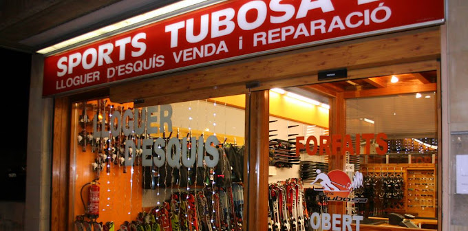 INICI Els nostres serveis LLOGUER DE MATERIAL Esquí alpíEsquí de muntanyaSnowboardRaquetesAccesoris: Guants, ulleres, etc REPARACIÓ Soles Cantells Encerat Peces de la sola Muntatge fixacions Pells de foca VENTA NOU I OCASIÓ Esquís BotesPalsCascsAccessoris TUBOSA 1 TUBOSA 2